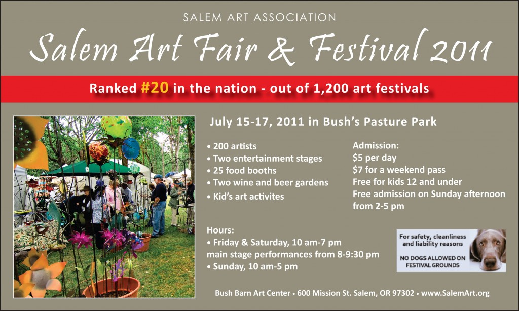 Summer is here, and that means one thing… hanging out in the beautiful Bush’s Pasture Park in Salem, under the oaks… people watching, talking art, listening to music, seeing my ‘peeps’! I’m getting excited and I hope you will be able to stop by. For more info, visit www.salemart.org.